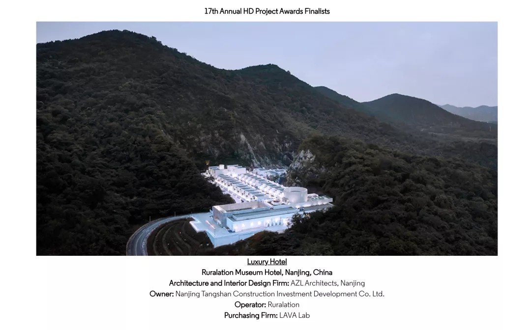由南京湯山建設(shè)投資發(fā)展有限公司投資打造、張雷聯(lián)合建筑事務(wù)所與廣州綠沁溫泉設(shè)計集團(tuán)聯(lián)合設(shè)計、云夕品牌運營的湯山云夕博物紀(jì)溫泉酒店,在全球近800個 項目中脫穎而出,成為本屆唯一入圍HD Awards最高獎Luxury Hotel奢華酒店獎的中國酒店。