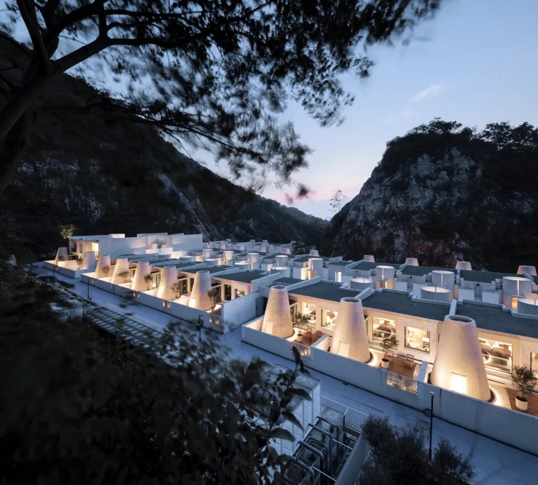 云夕博物紀(jì)“家徒四壁的高級感”認(rèn)為奢華是一種低調(diào)的極簡主義,讓所處基地湯山礦坑宕口的山崖景色成為客人去親切感知的自然。
