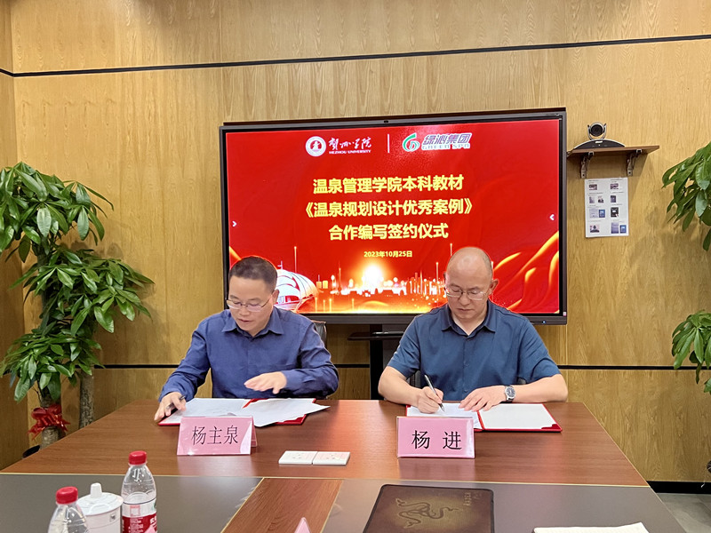 2023年10月25日,中國首部溫泉本科教材《溫泉規(guī)劃設(shè)計優(yōu)秀案例》編寫研討會第一次會議及合作編寫簽約儀式在廣州綠沁集團(tuán)拉開序幕,綠沁集團(tuán)董事長楊進(jìn)、賀州學(xué)院溫泉管理學(xué)院院長楊主泉、賀州學(xué)院溫泉管理學(xué)院副院長王西祺、旅游管理教研室主任寧永麗及溫泉管理學(xué)院相關(guān)專任教師等參加研討會,雙方就溫泉旅游規(guī)劃案例教材編寫事宜進(jìn)行深度探討,共同推進(jìn)溫泉旅游高等教育,推動溫泉產(chǎn)學(xué)研合作研究。